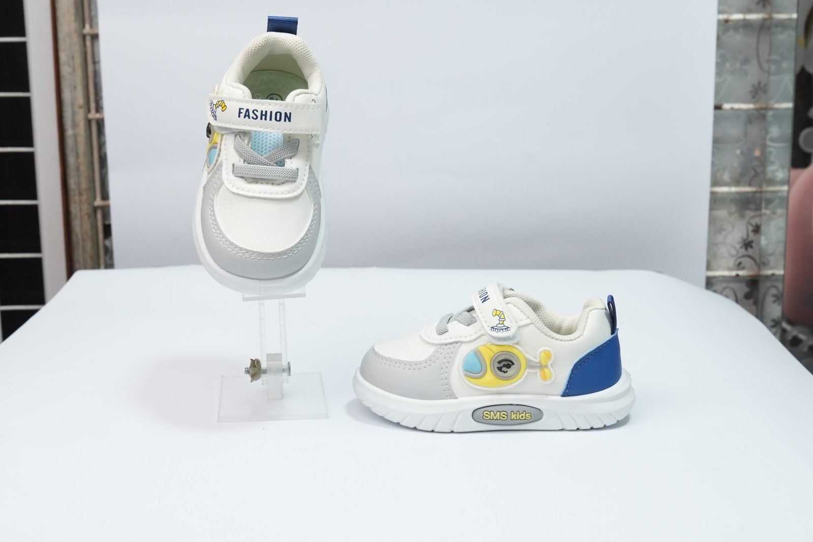 grey and blue sneakers