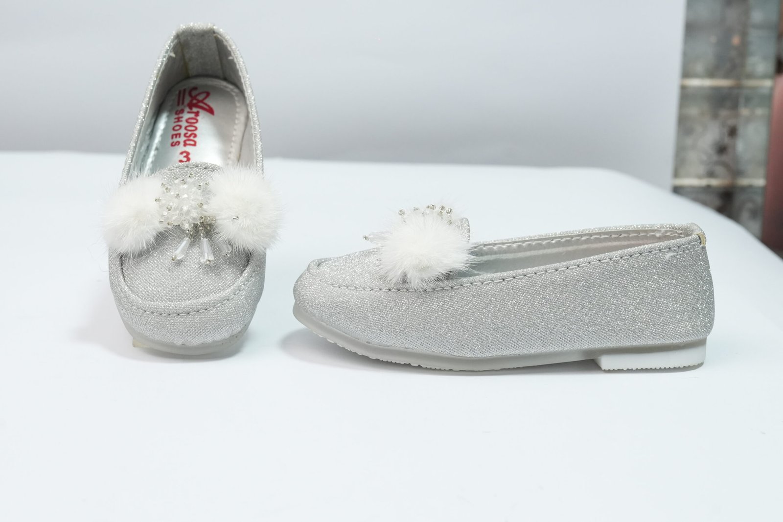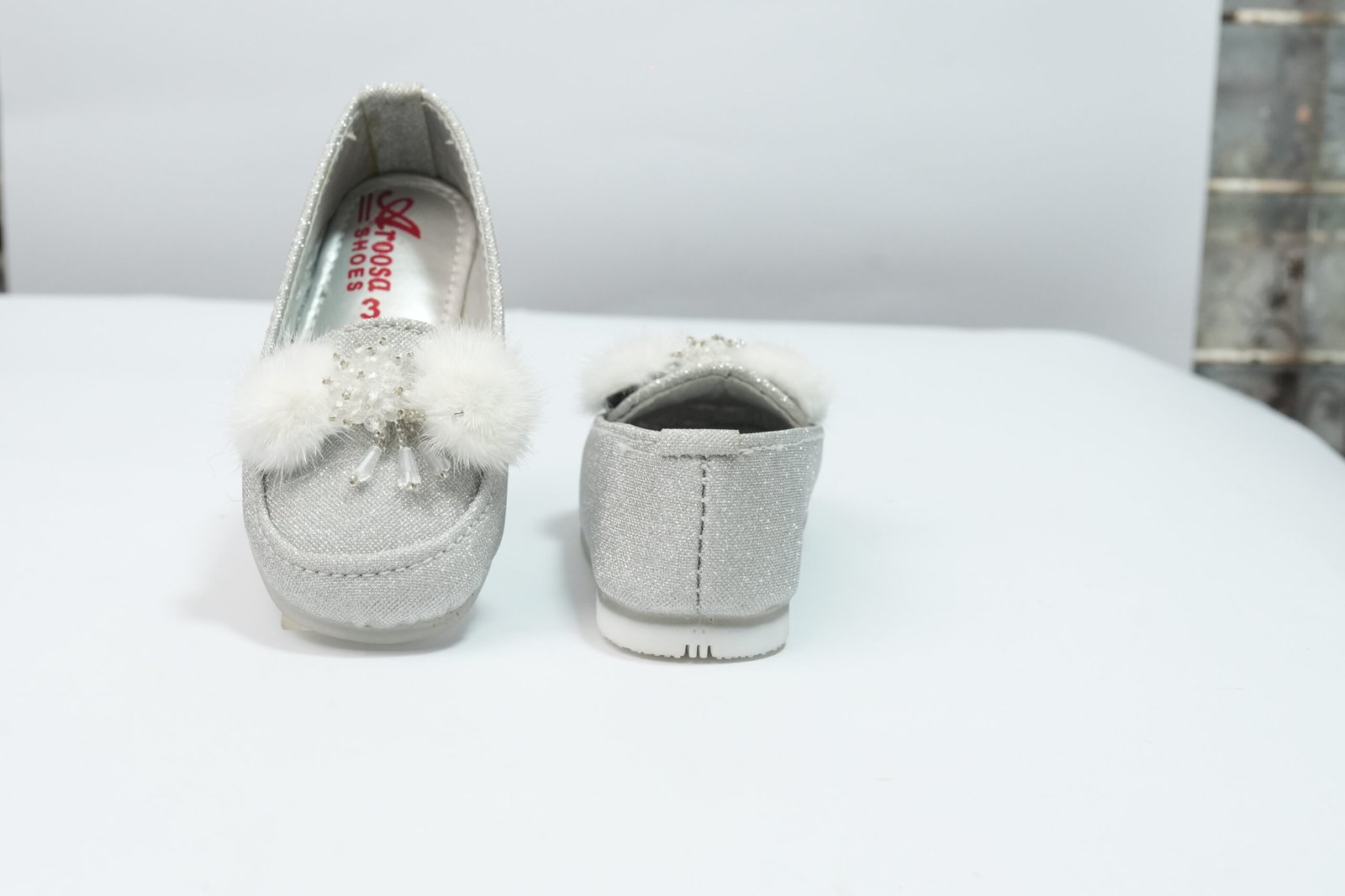 silver color fancy pumps
